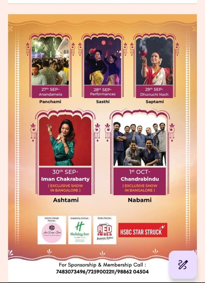 Come, celebrate the eternal spirit of Shakti with RT Nagar Socio Cultural Trust and make this Durga Puja a memorable one.